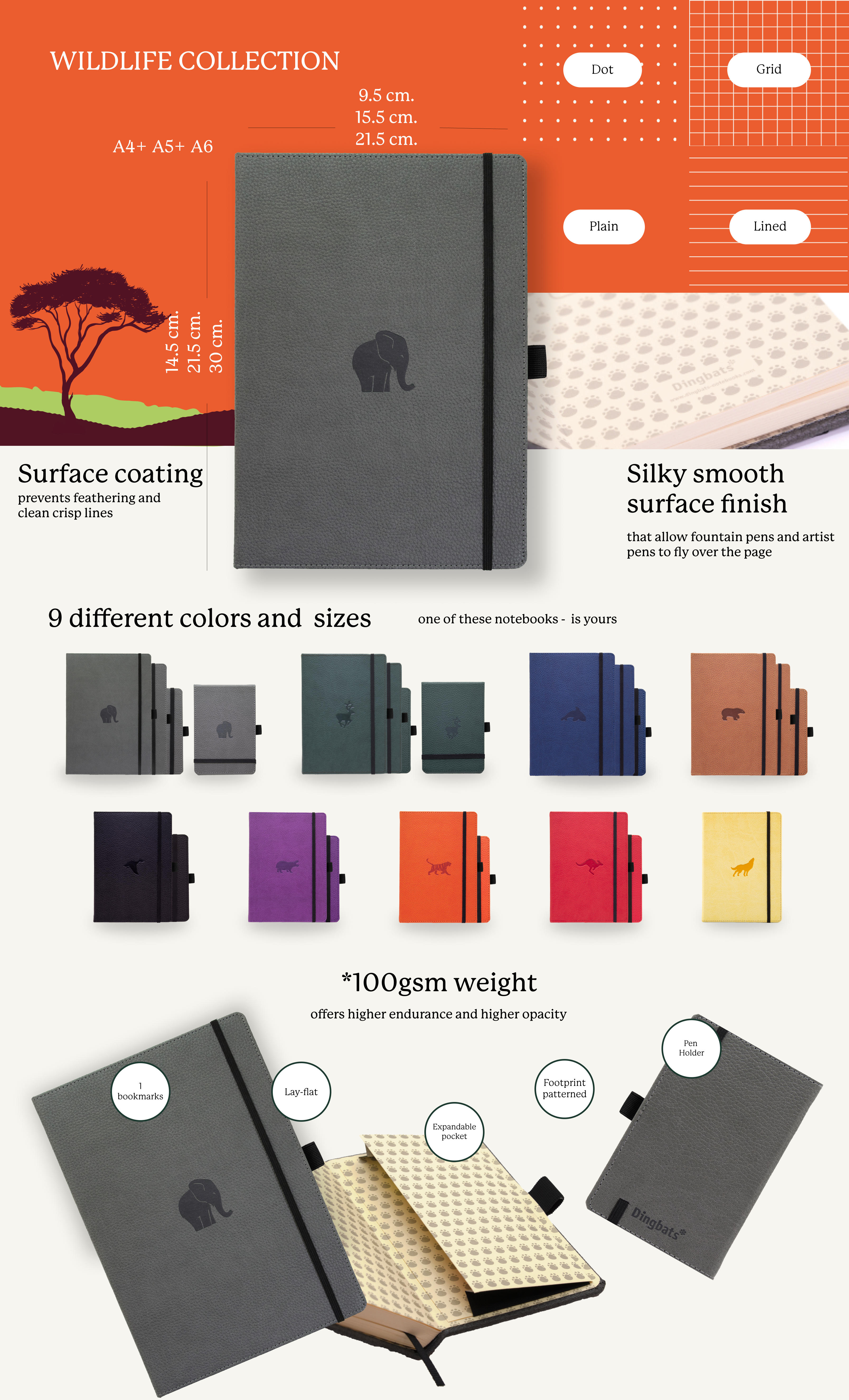 A celebration of some of our planet’s most incredible species, your Dingbats* Wildlife notepad is not only a space for the unbounded possibility of your own creativity, but it’s also a finely bound product inspired by an immense appreciation for the majestic animals we’re lucky to share this planet with.